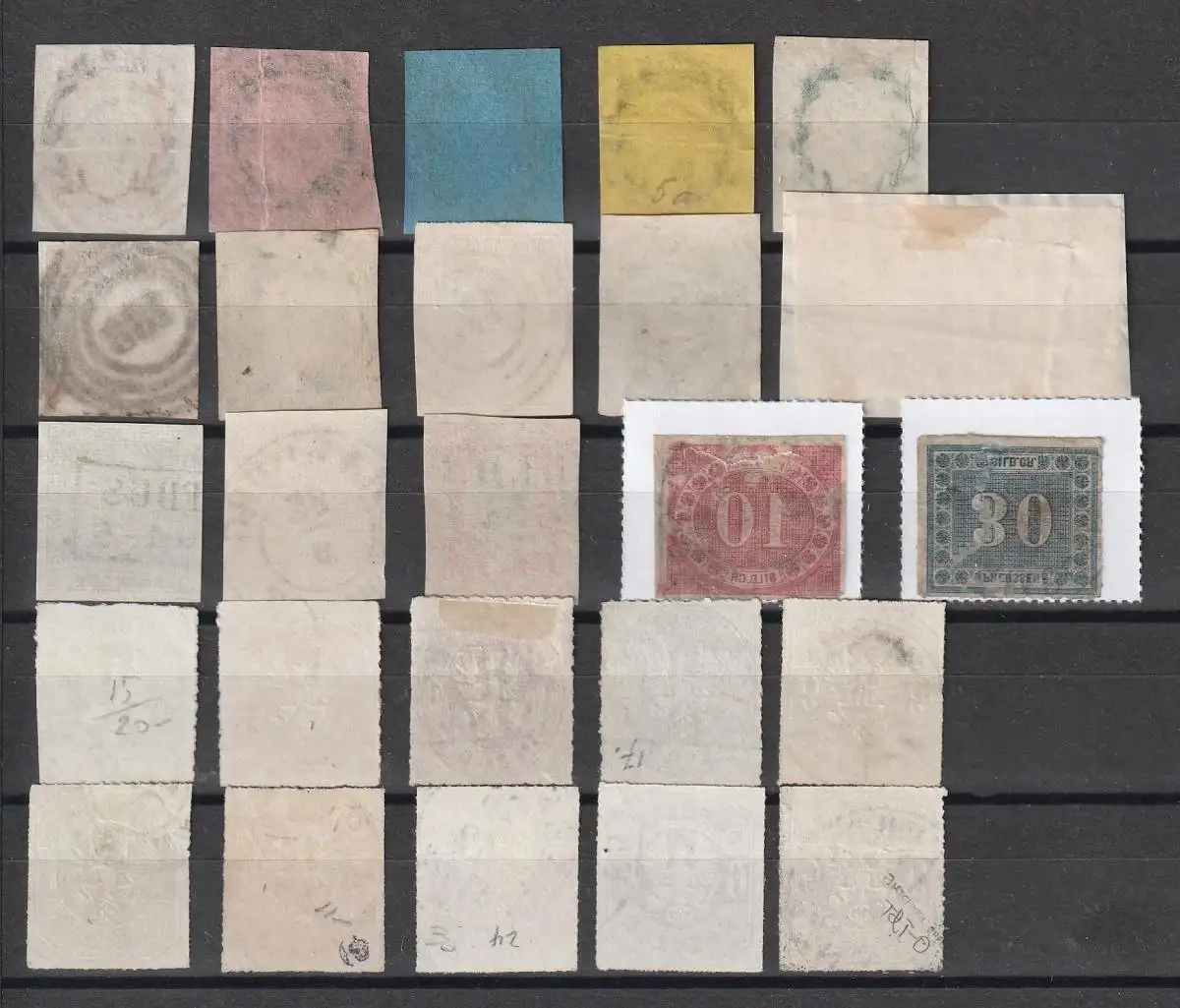 Die Marken sind von unterschiedlicher Erhaltung - d.h. von "einwandfrei" bis "mangelhaft", in jedem Fall aber sammelwürdig. Nr. 1, 2 und 4 haben einen Bug, Nr. 20 und 21 mit den üblichen Farbabsplitterungen. Siehe Abbildungen. Es werden genau die abgebildeten Marken verschickt. Der Michelwert beträgt 1.526,00 €.