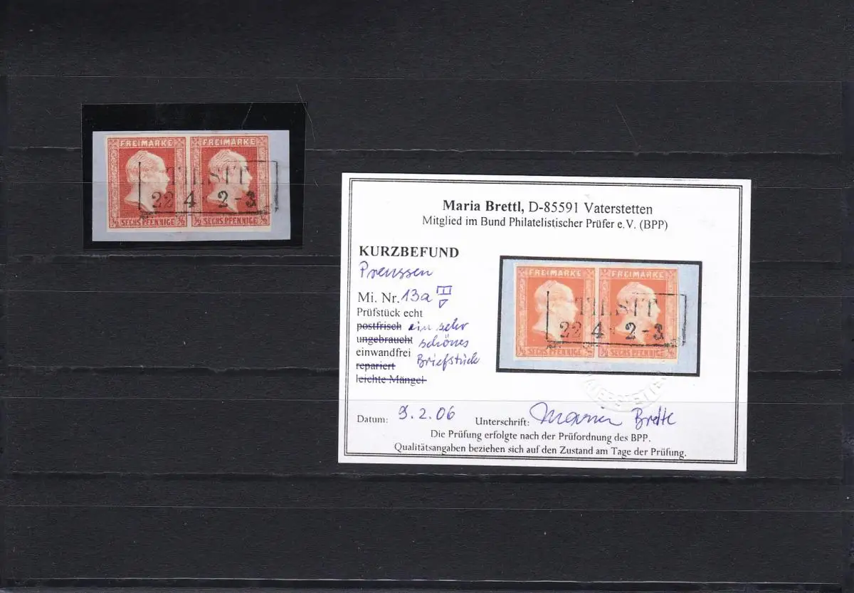 Preussen: MiNr. 13a, gestempelt Tilsit im Paar, BPP Befund