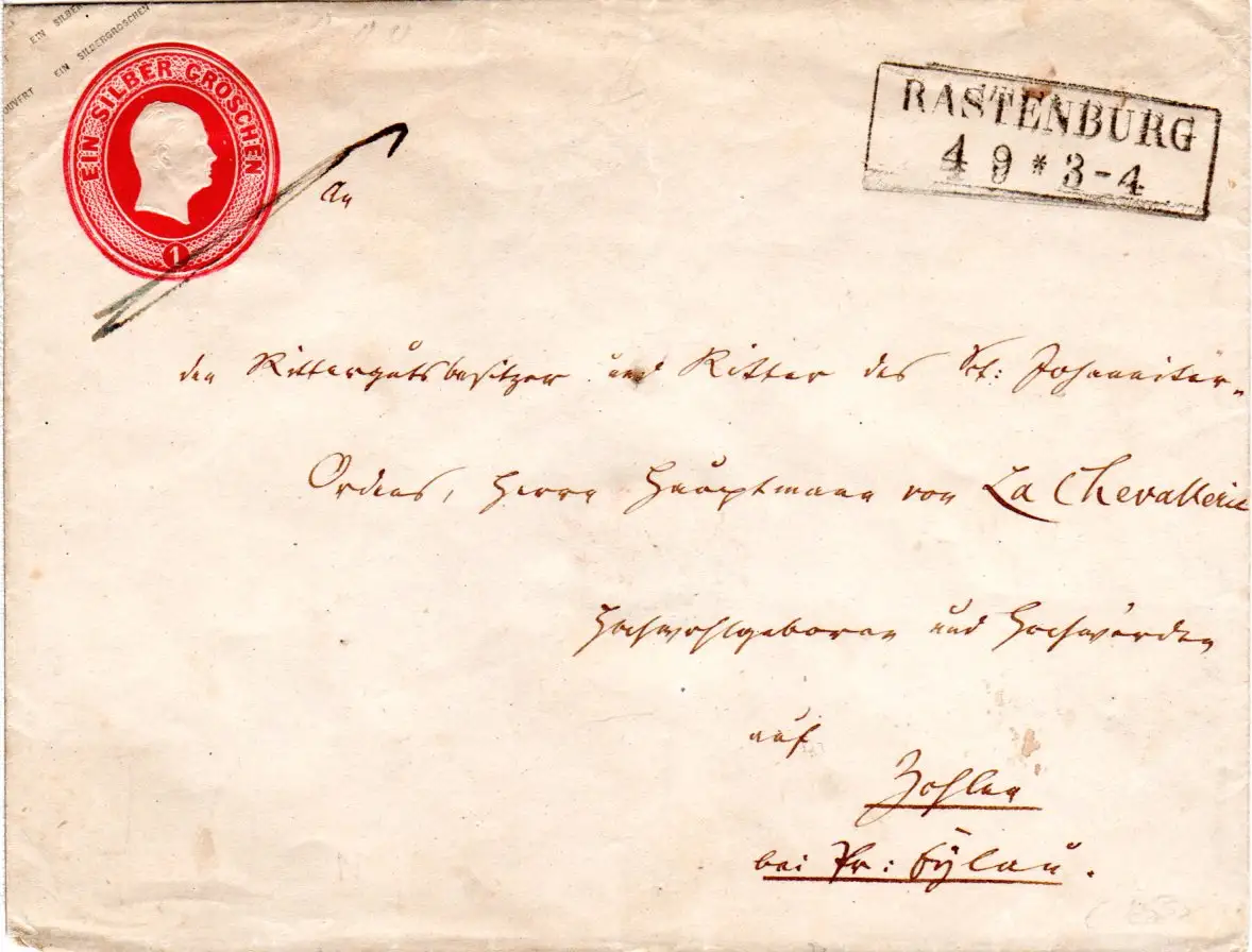 Preussen, Ostpreussen-R2 RASTENBURG klar auf 1 SGr. Ganzsachenumschlag