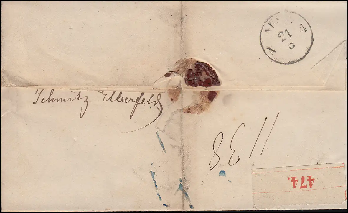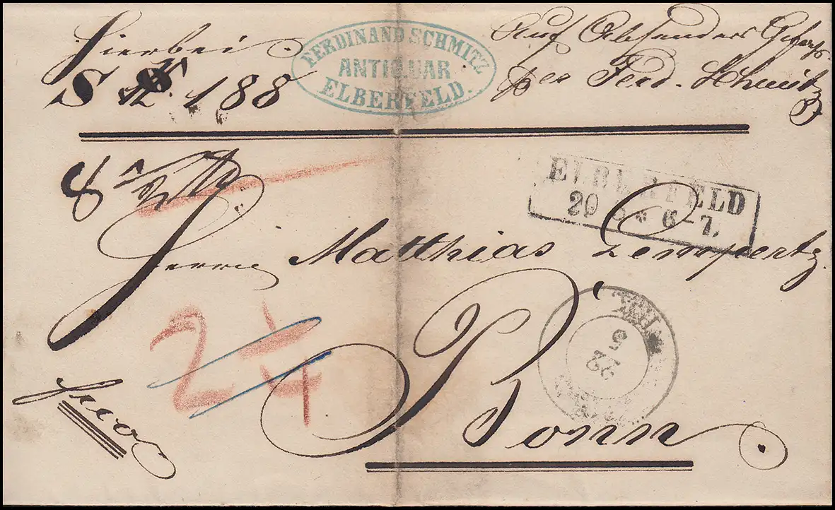 Preußen Paketbegleitbrief ELBERFELD 20.5.1858 nach BONN 21.5.