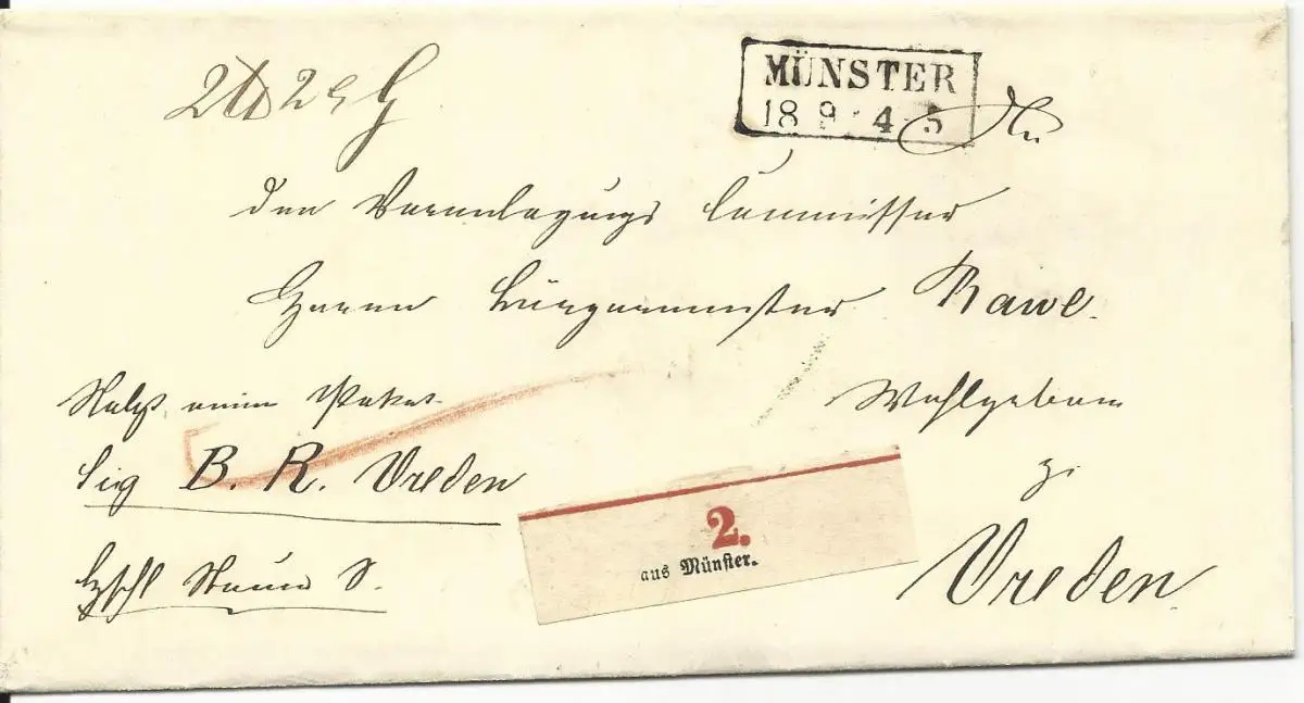 Preussen, R2 MÜNSTER auf Paket Brief n. Vreden m. Zettel "aus Münster"