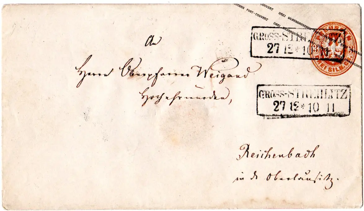 Preussen, Schlesien R2 GROSS-STREHLITZ auf 3 SGr. Ganzsachenumschlag