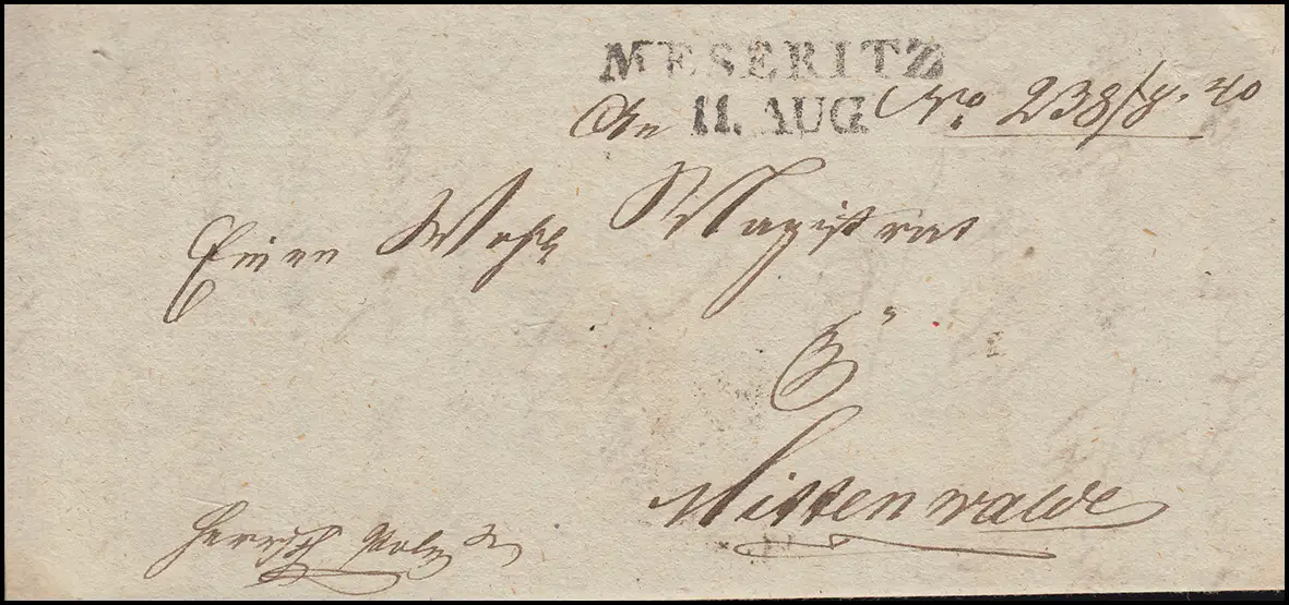 Preußen Vorphilatelie Faltbrief Zweizeiler MESERITZ 11.8.1840 nach Mittenwalde