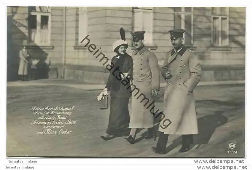 Prinz Ernst August Herzog zu Braunschweig mit seiner Braut Prinzessin Victoria Luise von Preussen und Prinz Oskar - Verlag Keltz & Meiners Berlin (G25475)