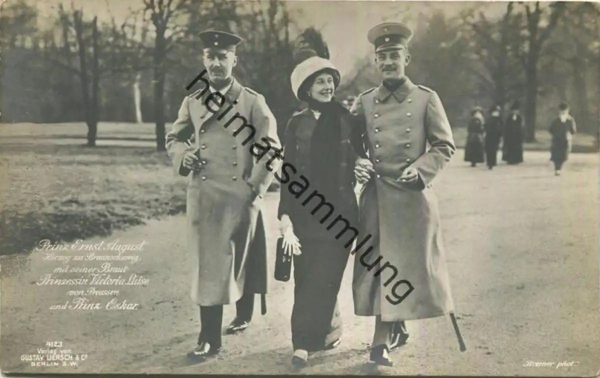 Prinz Ernst August Herzog zu Braunschweig mit seiner Braut Prinzessin Victoria Luise von Preussen und Prinz Oskar - Phot. Bremer - Verlag Gustav Liersch Berlin (E32133)