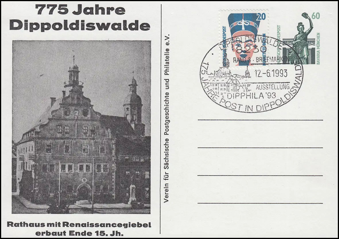 Privatpostkarte PP 151 775 Jahre Dippoldiswalde SSt DIPPOLDISWALDE 12.6.93