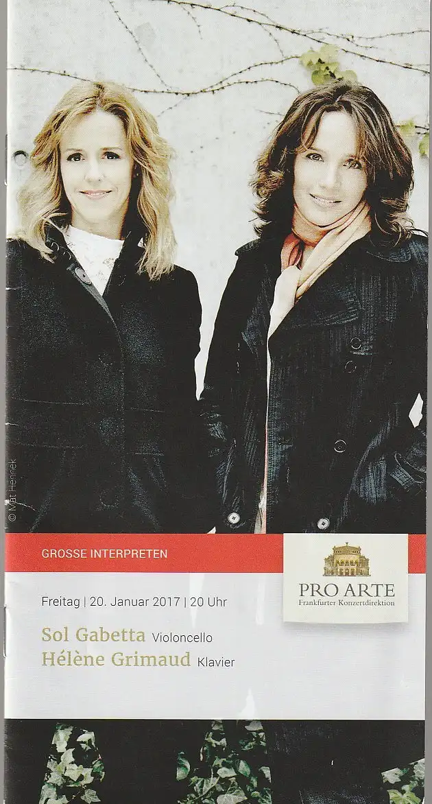 Pro Arte Frankfurter Konzertdirektion, Michael Herrmann, Philip Niggemann, Judith Kissel: Programmheft SOL GABETTA / HELENE GRIMAUD 20. Januar 2017 Alte Oper Frankfurt.