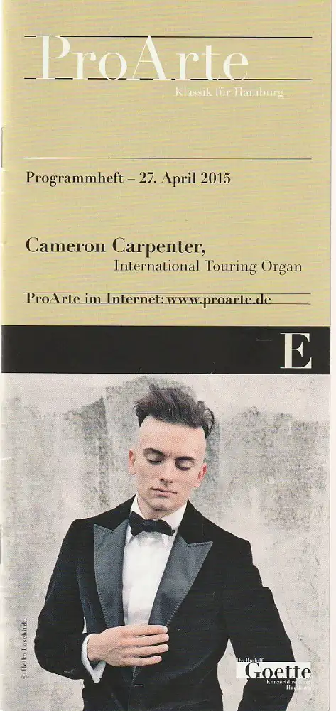 Pro Arte Klassik für Hamburg: Programmheft CAMERON CARPENTER International Touring Organ 27. April 2015 Laeiszhalle Großer Saal.