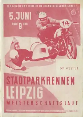 Programm Leipziger Stadtparkrennen 5.6.1955