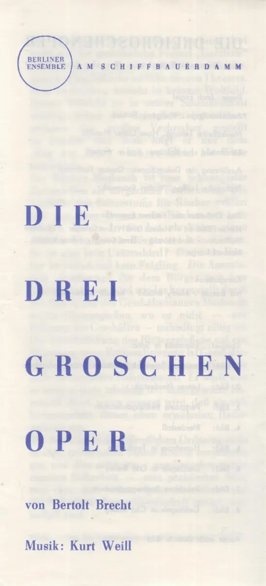 Schlagworte: Theater, Schauspiel, Berliner Ensemble am Schiffbauerdamm, Bertolt Brecht, Kurt Weill