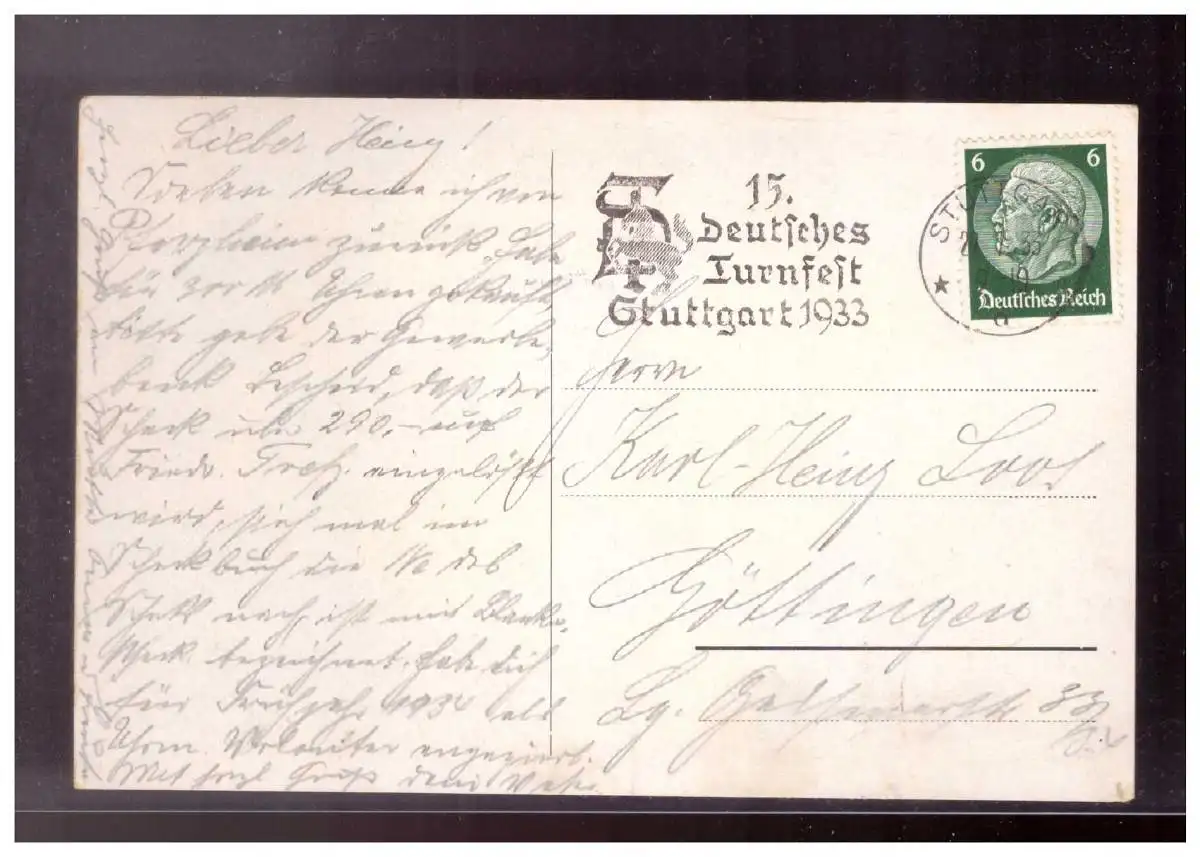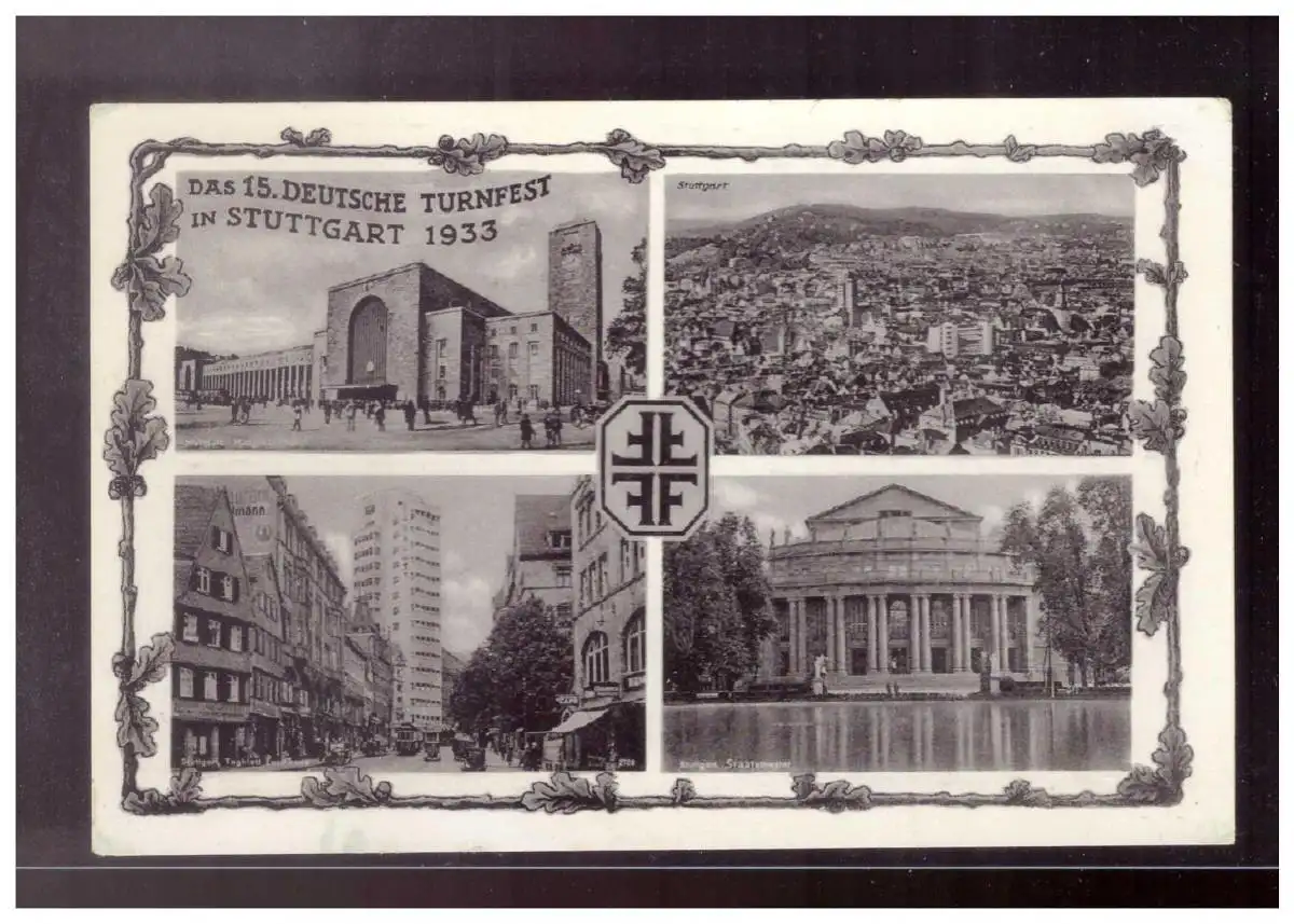 [Propagandapostkarte] AK (022971) Stuttgart Mehrfelderkarte, Das 15. Deutsche Turnfest in Stuttgart 1933, gelaufen Stuttgart.