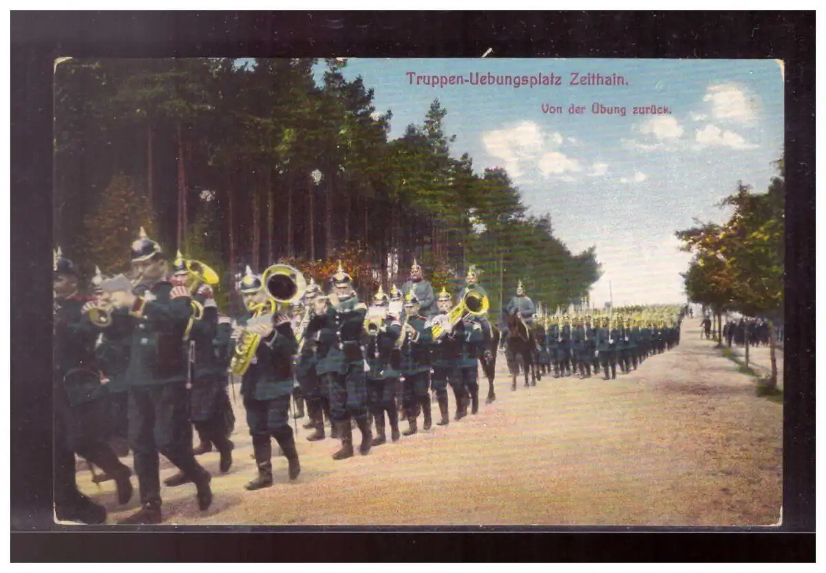 Titel: DT-Reich (021684) Propaganda Postkarte, Truppenübungsplatz Zeithain, von der Übung zurück, ungebraucht