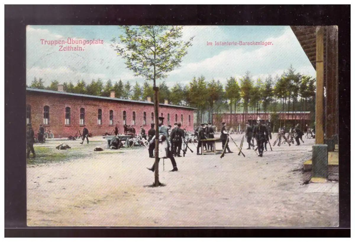 Titel: DT-Reich (021697) Propaganda AK, Truppen- Übungsplatz Zeithain, Im Infanterie- Barackenlager, gelaufen