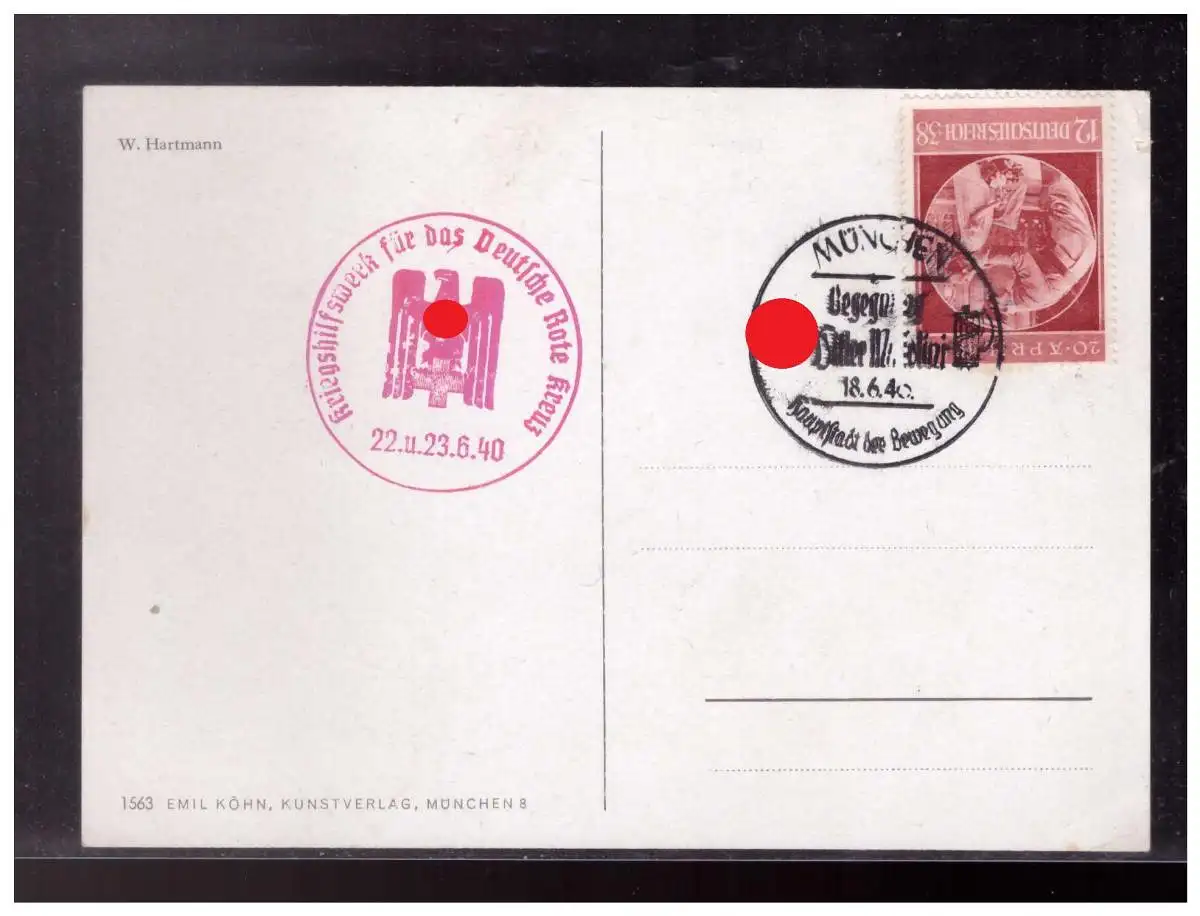 Titel: DT- Reich (022976) Propagandakarte Benito Mussolini, blanco gest. mit 2 SST München 18.640 und Das Deutsche rote Kreuz