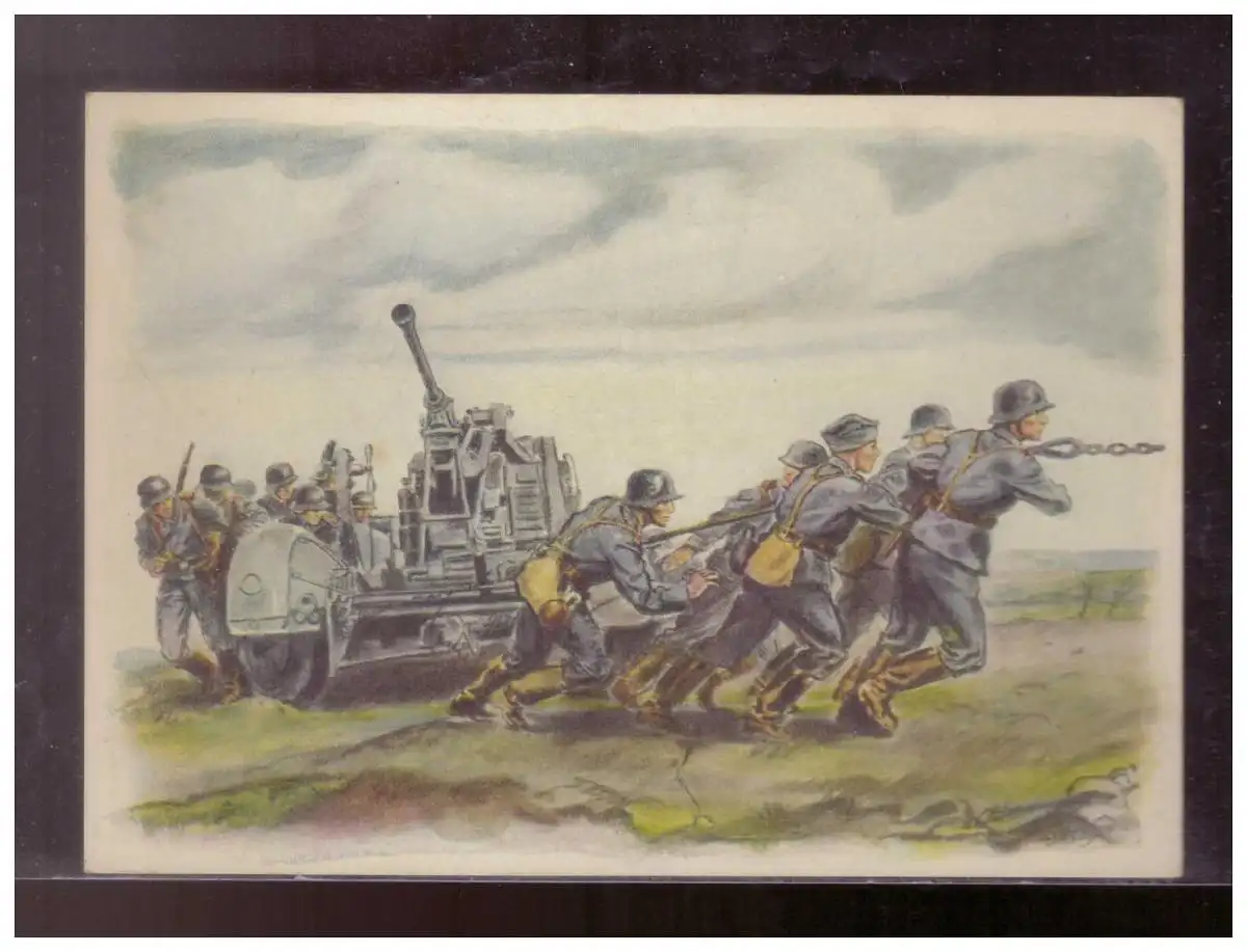 [Propagandapostkarte] DT-Reich (023392) Propagandakarte farbig Flak- Geschütz wird in Stellung gebracht, ungebraucht.