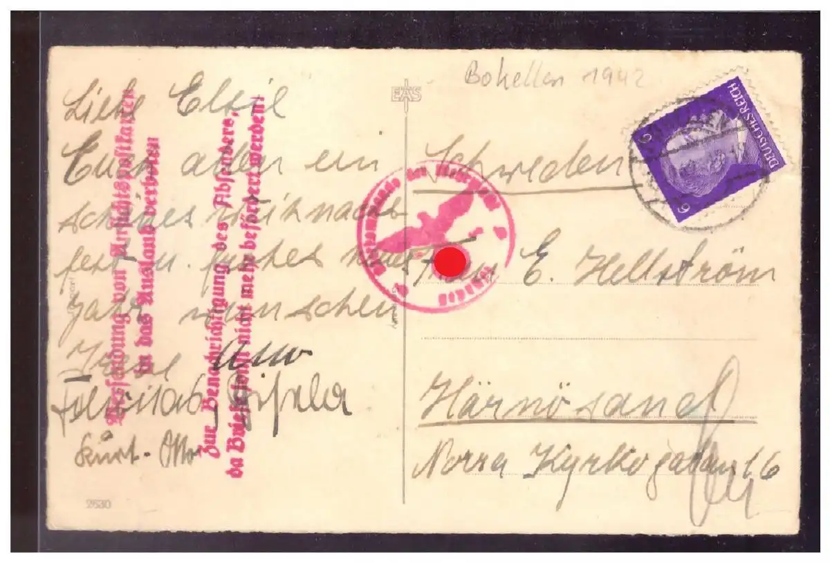 [Propagandapostkarte] Dt- Reich (022629) AK Winterlandschaft, gelaufen nach Schweden mit 2 Stempeln, Ak`s ins Ausland Verboten, und Info für d.