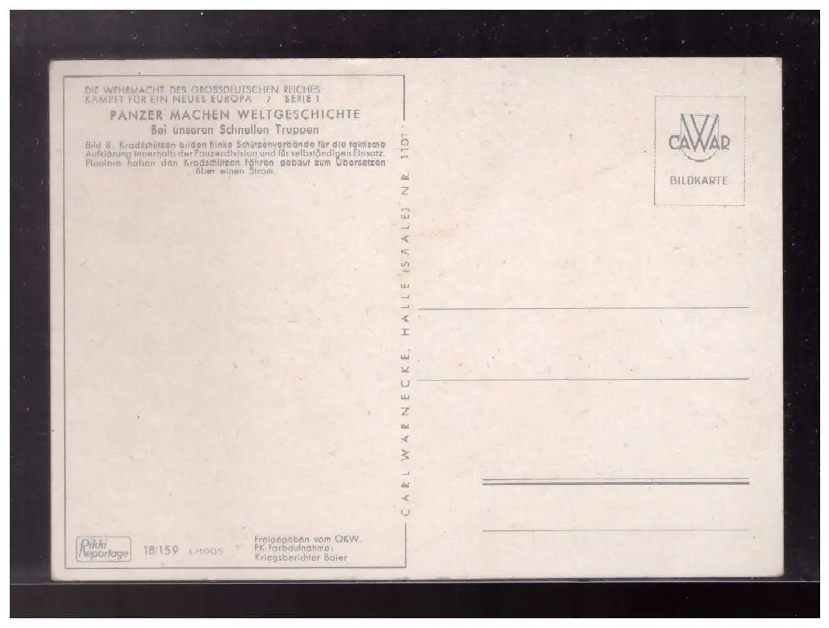Titel: Dt- Reich (022705) Propaganda PostkartePanzer machen Weltgeschichte, Kradschützen, ungebraucht