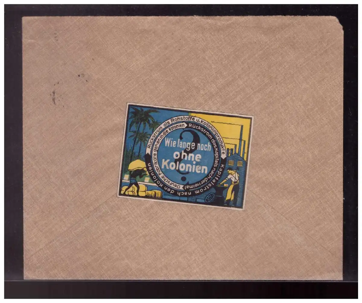 Titel: Dt- Reich (023075) Propaganda Vorgedruckter BriefErnst Witte Solingen, RS Vignette Wie lange noch ohne Kolonien, gelaufe