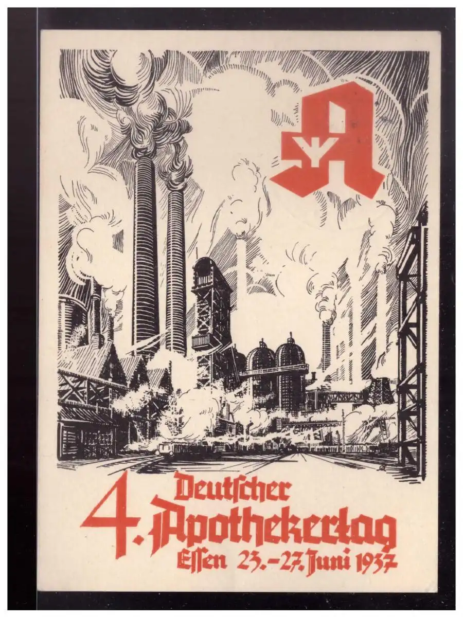 [Propagandapostkarte] Dt-Reich (023482) Propagandakarte, 4.Deutscher Apothekertag, Essen 1937, blanco mit SST Essen am 25.6.1937.