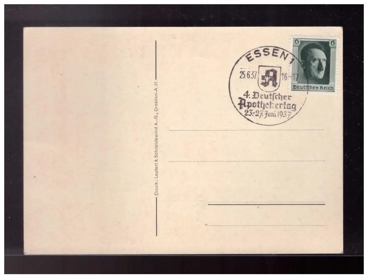 Titel: Dt-Reich (023482) Propagandakarte, 4.Deutscher Apothekertag, Essen 1937, blanco mit SST Essen am 25.6.1937