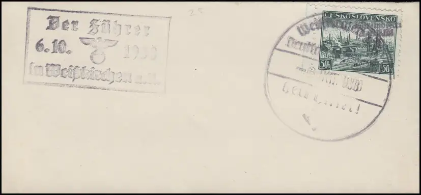 Propagandastempel und SSt. Der Führer am 6.10.1938 in Weiskirchen Blanko-Brief