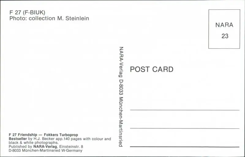 PropellerFlugzeug F 27 Friendship - Fokkers Turboprop (F-BIUK) 1985