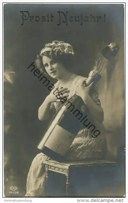 Prosit Neujahr - Junge Frau mit einer Magnum Flasche Bouvier sec - Foto-AK - Verlag EAS (G28776) gel. 1911
