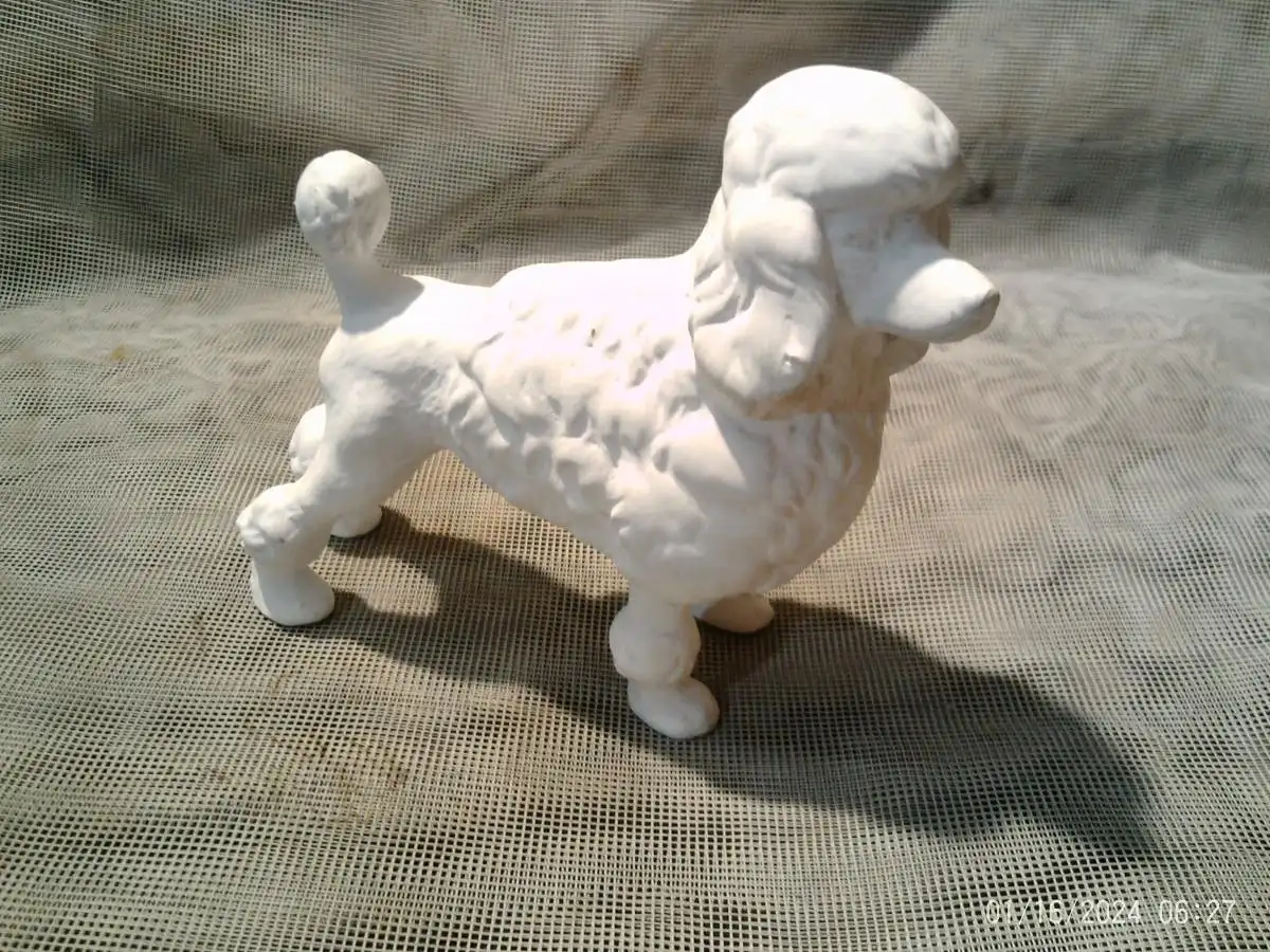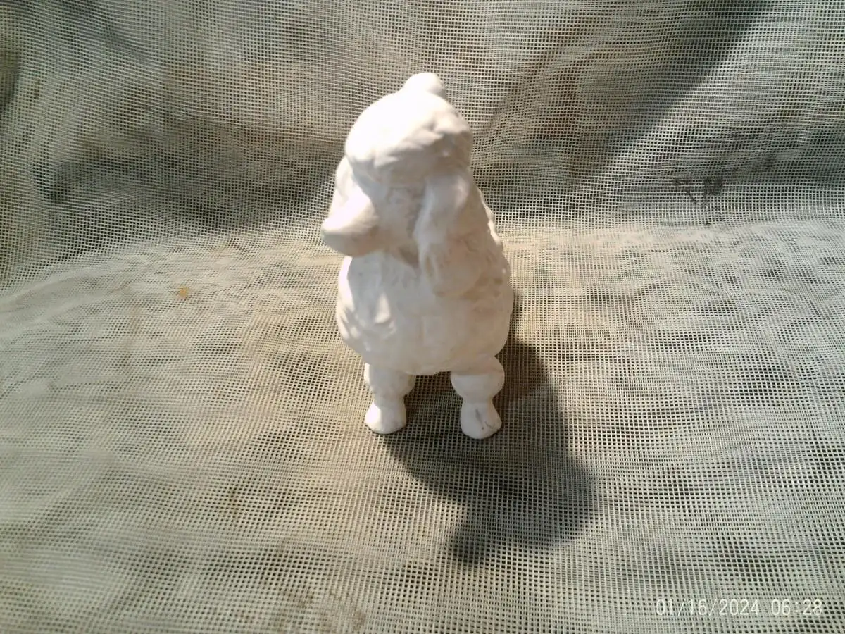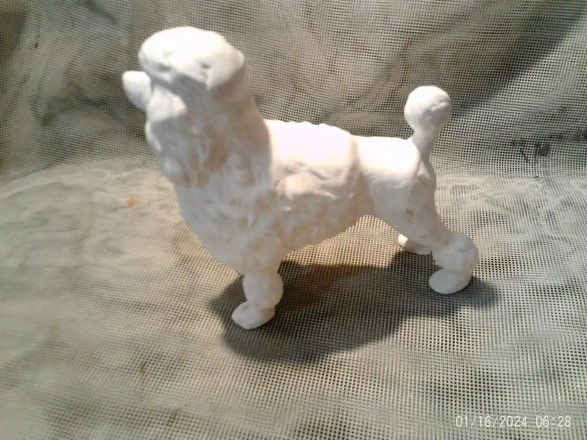 Pudel Poodle Figurine Figure Porzellan Figur Hund Hundefigur um 1970 aus der Vitrine in der Art Meissen / Sitzendorf etc sehr naturell !