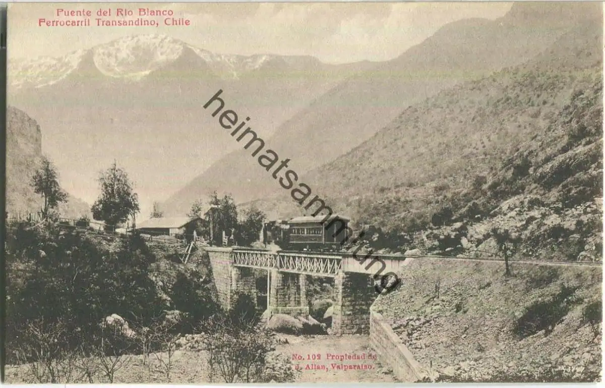 Puente del Rio Blanco - Ferrocarril Transandio - Verlag J. Allan Valparaiso - Rückseite beschrieben 1920 (E89596) *