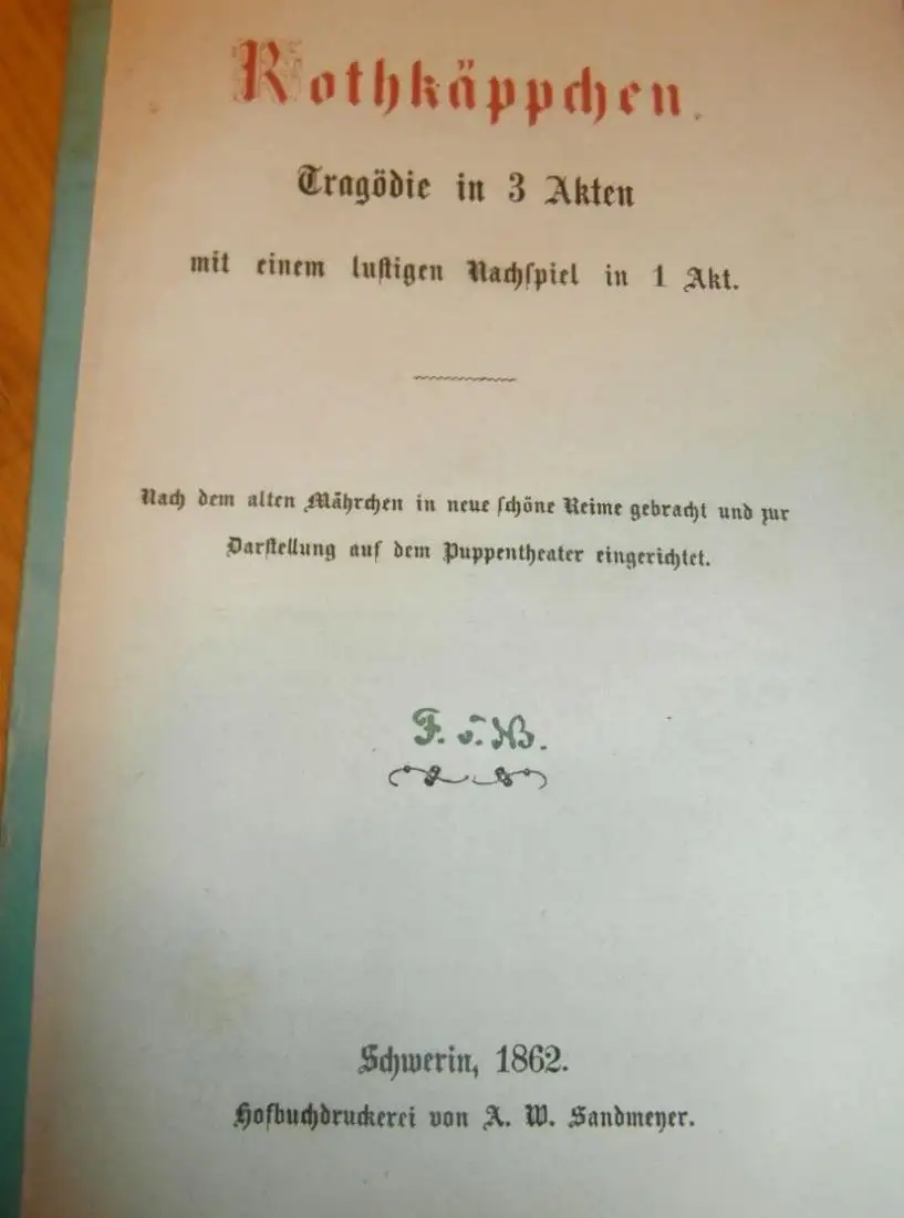 Puppentheater - Schwerin - 1862 - Rothkäppchen , Theater , Tragödie , altes Buch !!