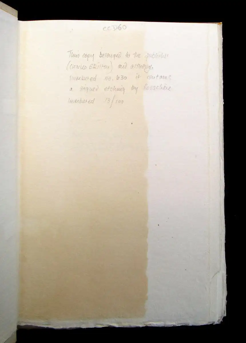 mit 1 Orig. Linolschnitt (Linocut) u. 1 Orig. Radierung signiert und auf 130 Exemplare nummeriert (Ething) XVI, 160 S., Orig. Leinen mit Schutzumschlag