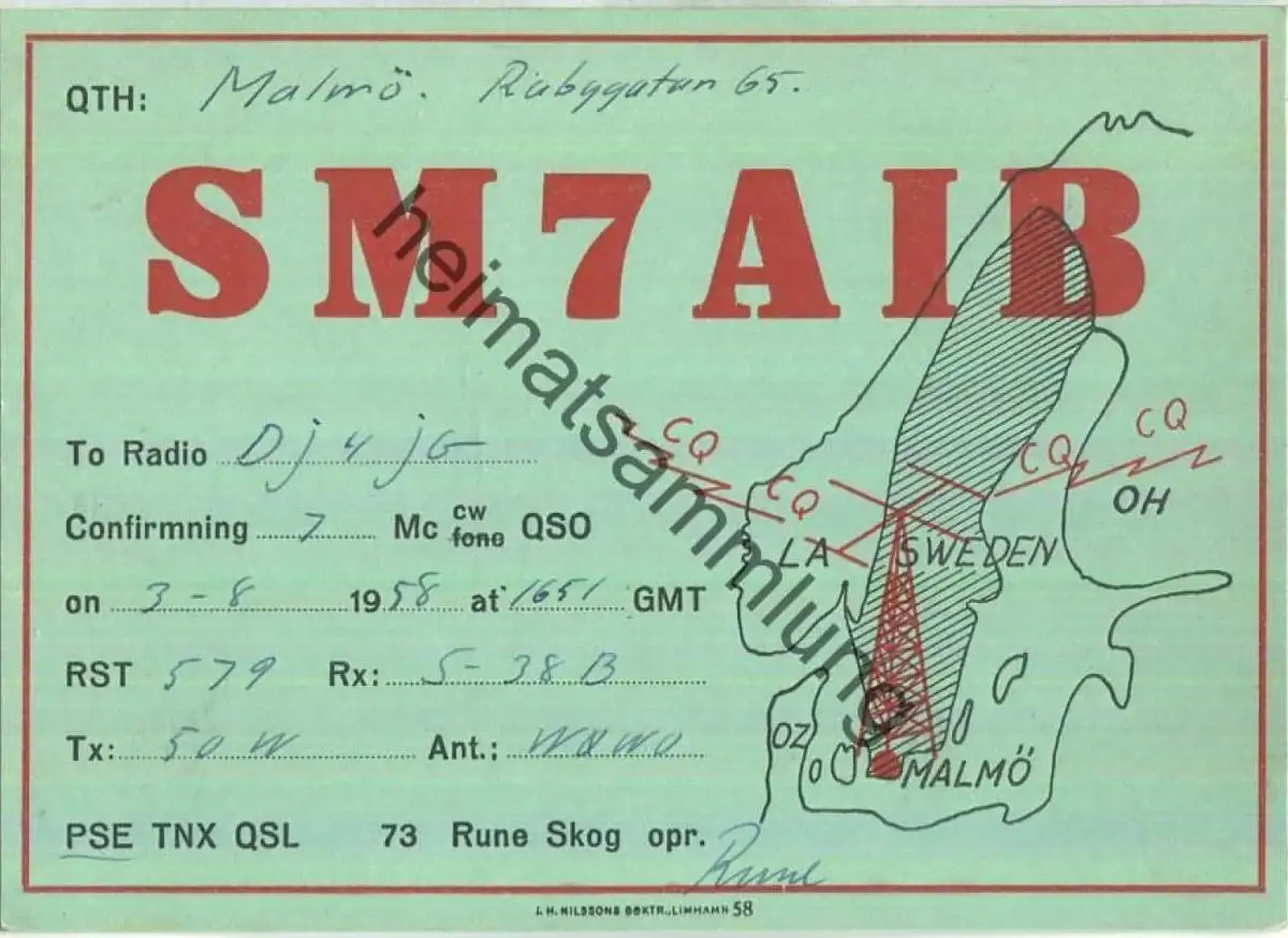 QSL - Funkkarte - SM7AIB - Sweden - Malmö - 1958