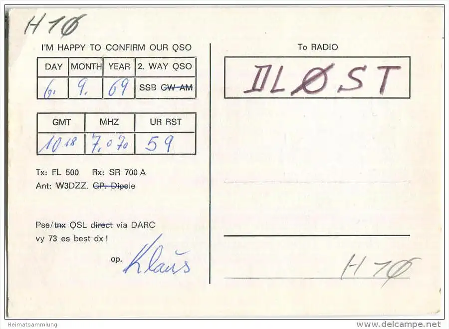 QSL - QTH - Funkkarte - DK3QC - Göttingen - 1969