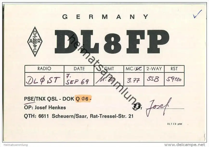 QSL - QTH - Funkkarte - DL8FP - Tholey - Scheuern (Saar) - 1969