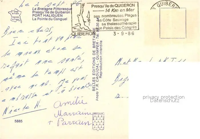 Quiberon_Morbihan Fliegeraufnahme Port Haliguen Quiberon Morbihan postalisch gelaufen 1986 Erhaltung siehe scans [LiesaD40] LiesID40