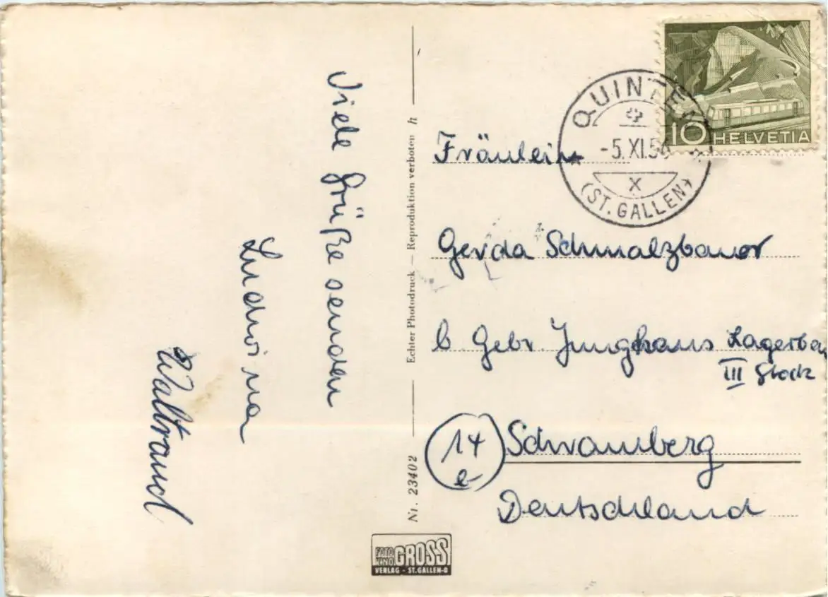 Danke. Alles Bestens. Können Sie mir allenfalls mitteilen, aus welchem Jahr die Postkarte stammt? Besten Dank.