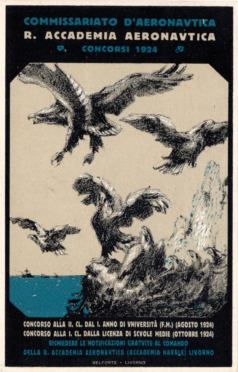 C - R. Accademia Aeronautica - Schöne Postkarte für die Wettbewerbe von 1924 (Hrsg. Belforte Livorno), gereist am 30.1.25 - sehr guter Erhaltungszustand Cod.169/182
