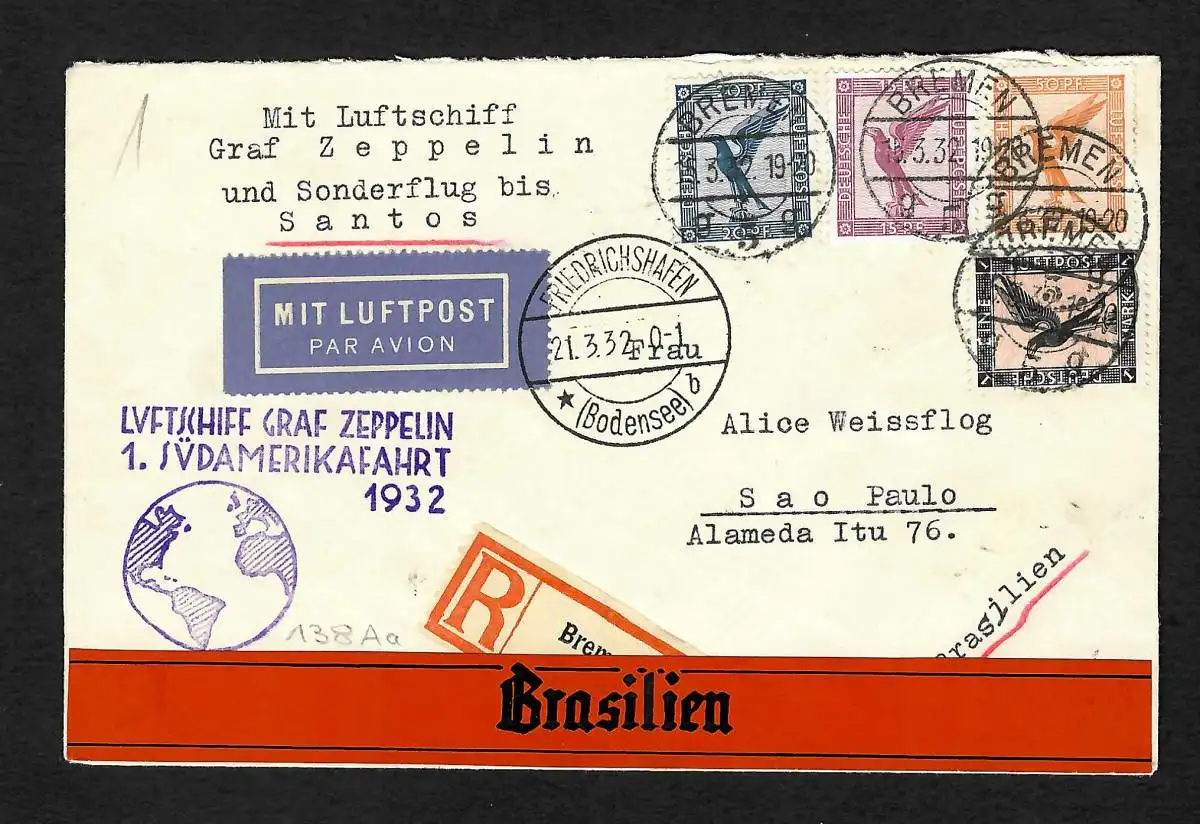 R-Brief Friedrichshafen, Luftschiff Graf Zeppelin LZ 127, 1.Südamerikafahrt 1932