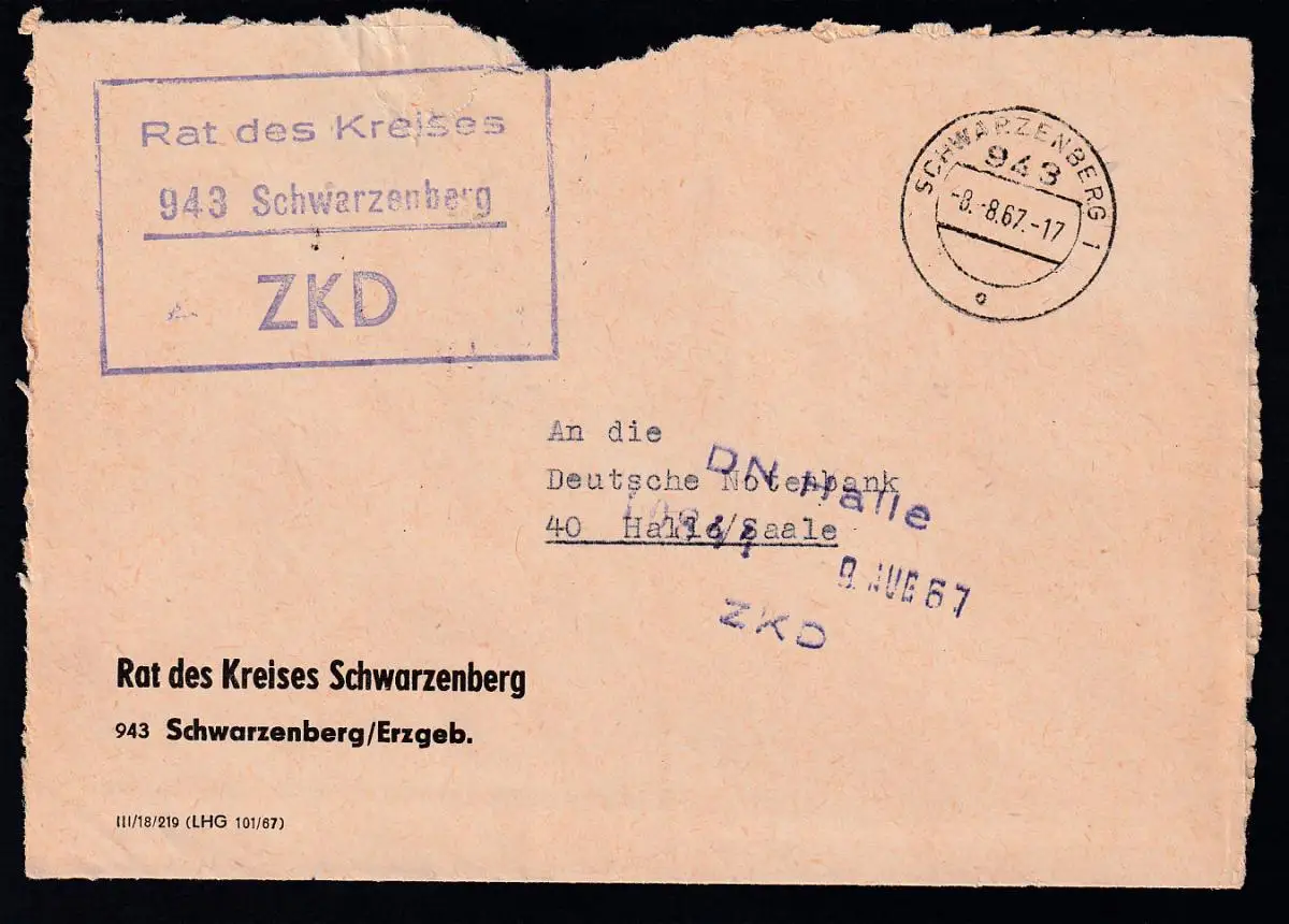 R3 Rat des Kreises 943 Schwartenberg ZKD auf Brief, Brief dreiseitig rauh geöffnet