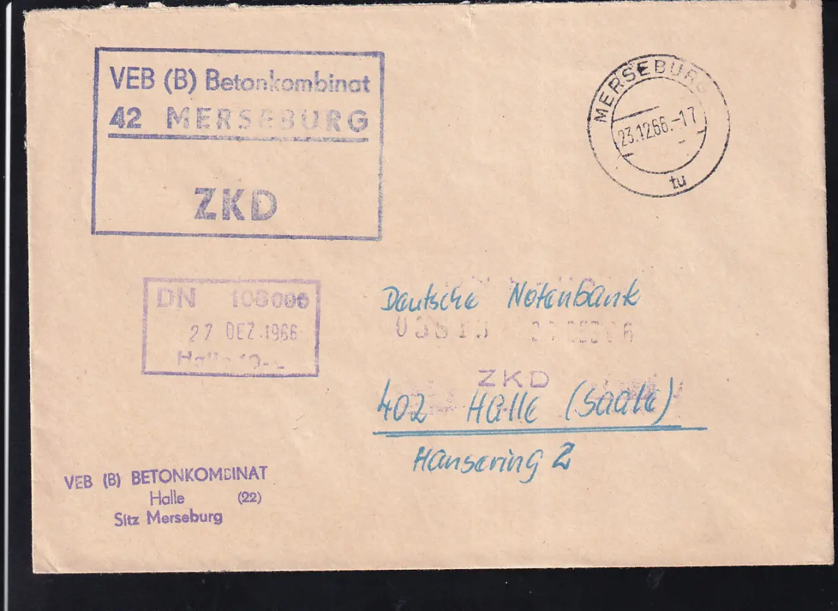 R3VEB (B) Betonkombinat 42 MERSEBURG ZKD auf Brief