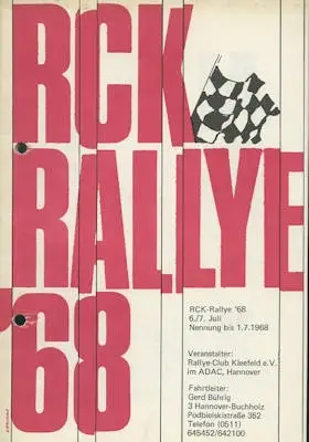 RCK Rallye Ausschreibung und Ergebnislisten 6./ 7.7.1968
