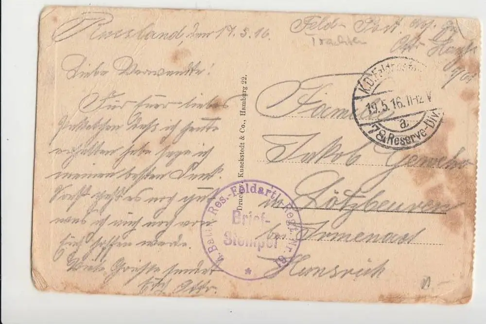 1916, Feldpost