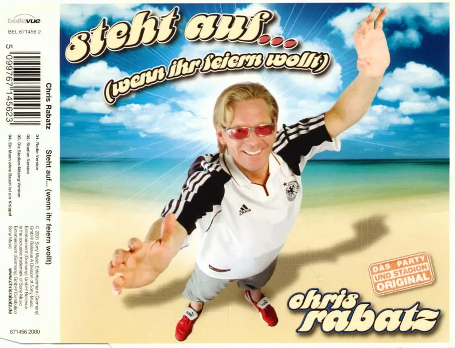 CD Single Chris Rabatz - Steht Auf Wenn Ihr Feiern Wollt, Zustand CD VG+ Hülle M-; 2001 Bellevue 671456 2, Tracks Steh Auf..Wenn Ihr Feiern Wol [Radio Vers.] 3:49, Steh Auf..Wenn Ihr Feiern Wol [Stadion Vers.] 3:49, Steh Auf..Wenn Ihr Feiern Wol [Stadion Mitsing Vers] 3:49, Ein Mann Ohne Bauch Ist Ein Kr 3:29