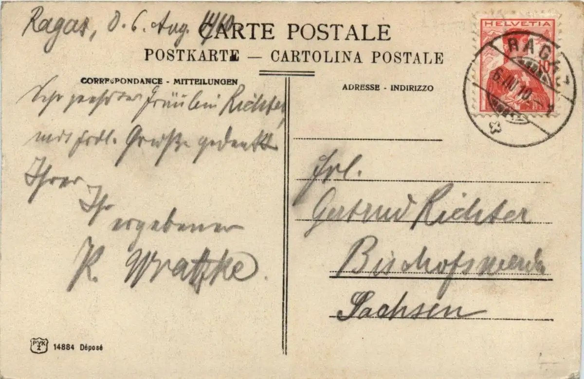 Danke. Alles Bestens. Können Sie mir allenfalls mitteilen, aus welchem Jahr die Postkarte stammt? Besten Dank.