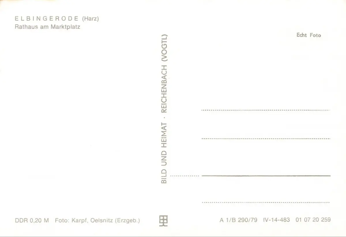 Rathaus und Marktplatz Elbingerode Harz Sachsen-Anhalt Postkarte AK