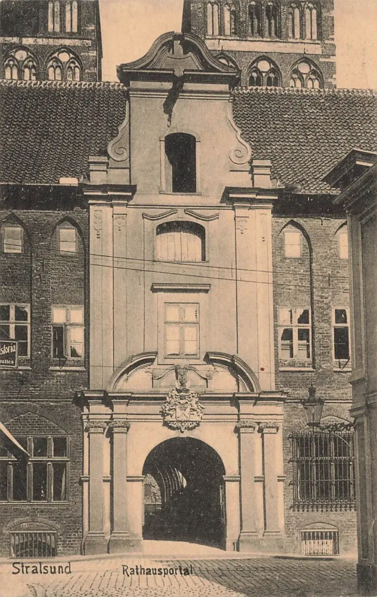 Rathausportal in Stralsund Mecklenburg-Vorpommern Postkarte AK