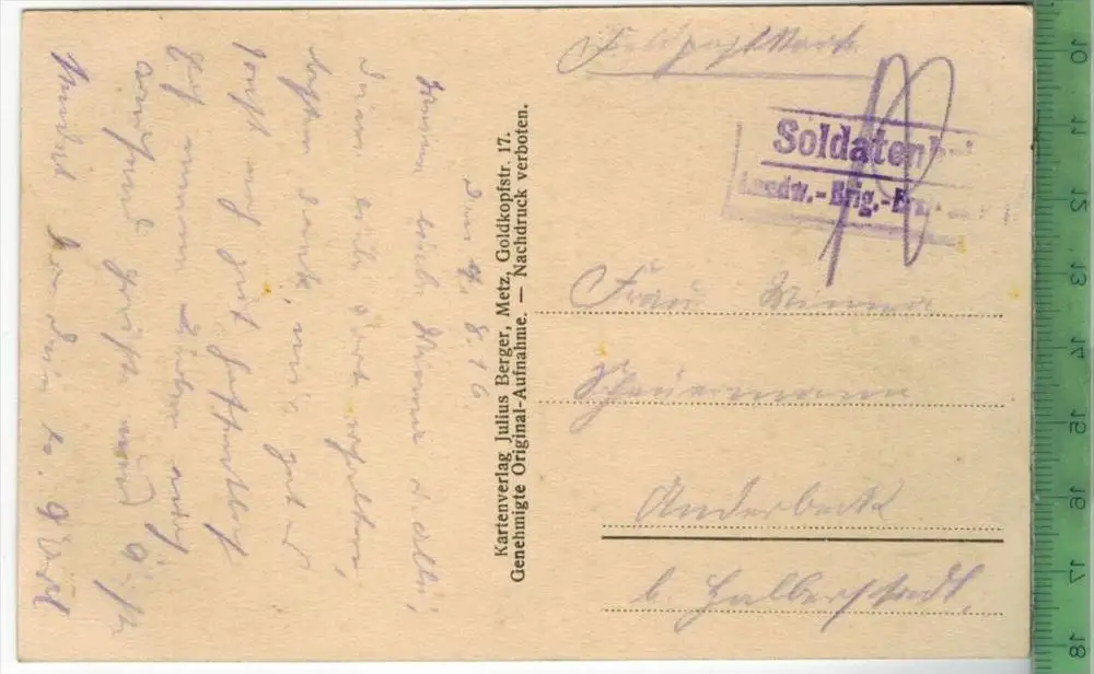 Raucourt- 1916 -, Verlag: Julius Berger, Metz, FELD- POSTKARTE, ohne Frankatur, mit Stempel, 4.8.16, Erhaltung: I-II, Karte wird in Klarsichthülle verschickt.