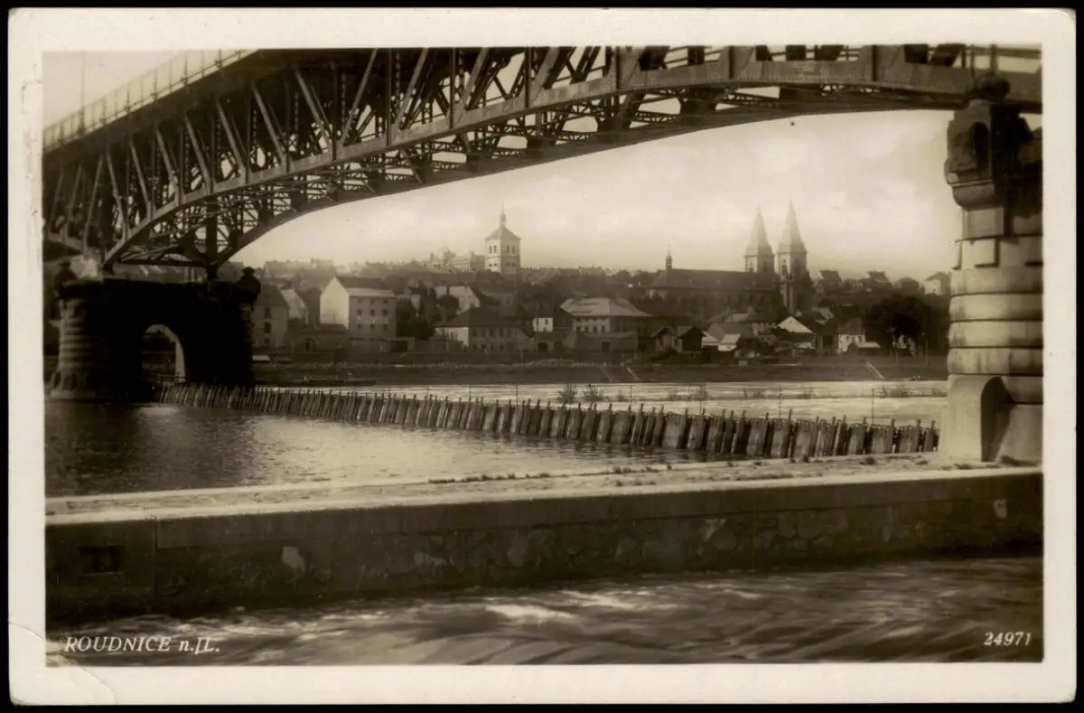 Raudnitz an der Elbe Roudnice nad Labem Brücke, Wehr und Stadt 1936