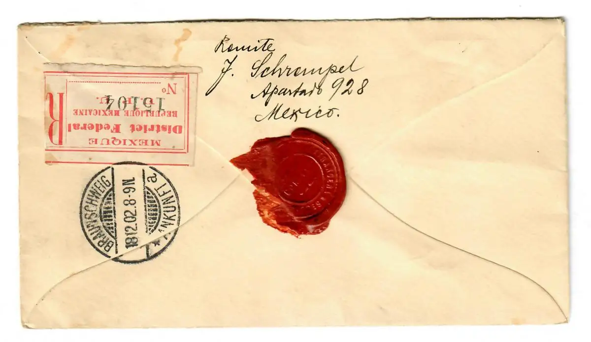Registered (see reverse) Distrikt Federal to Braunschweig 1902