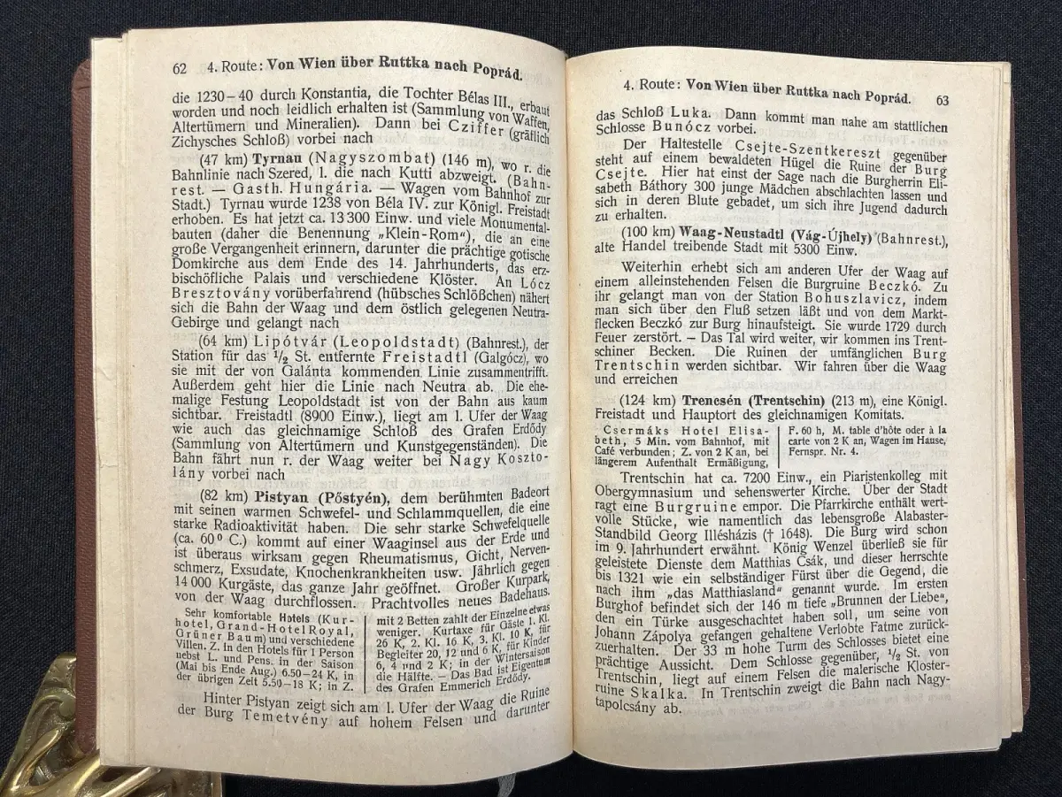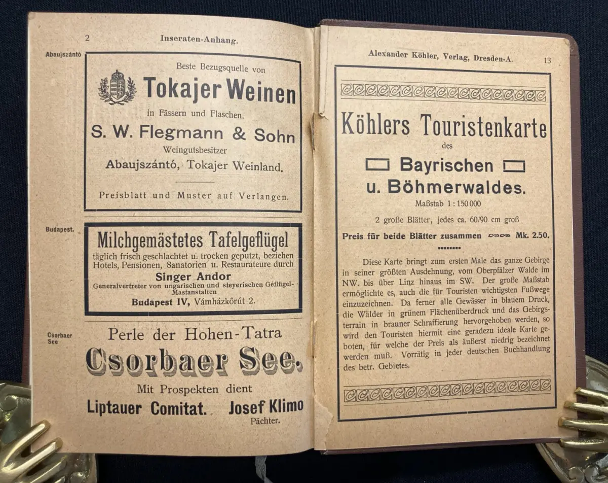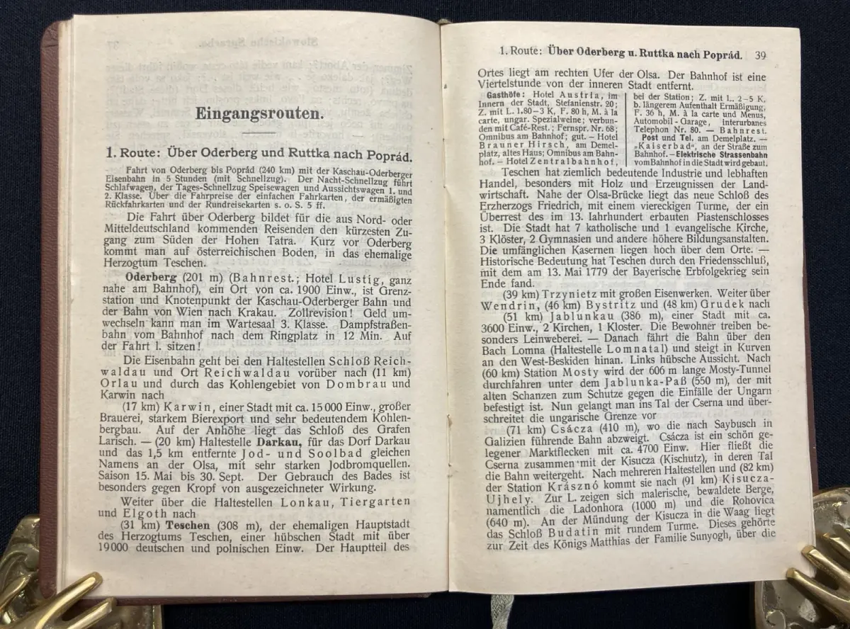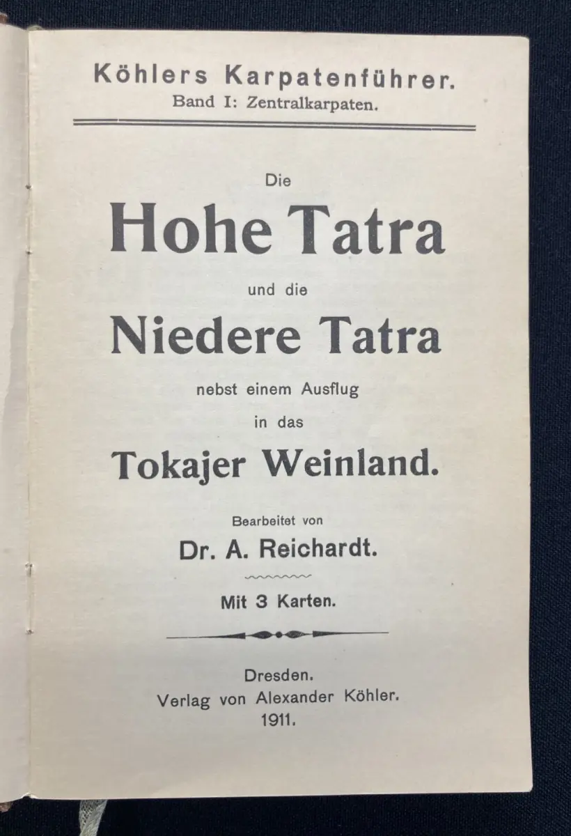 mit 3 Karten(Östlicher Teil, Westlicher Teil und die Niedere Tatra), 228 S., Inseratenanhang Seite 1-16(Seite 3-12 fehlt), Karte der Niederen Tatra mit hinterlegten Einrissen liegt bei, gold-/schwarzgeprägter Leineneinband